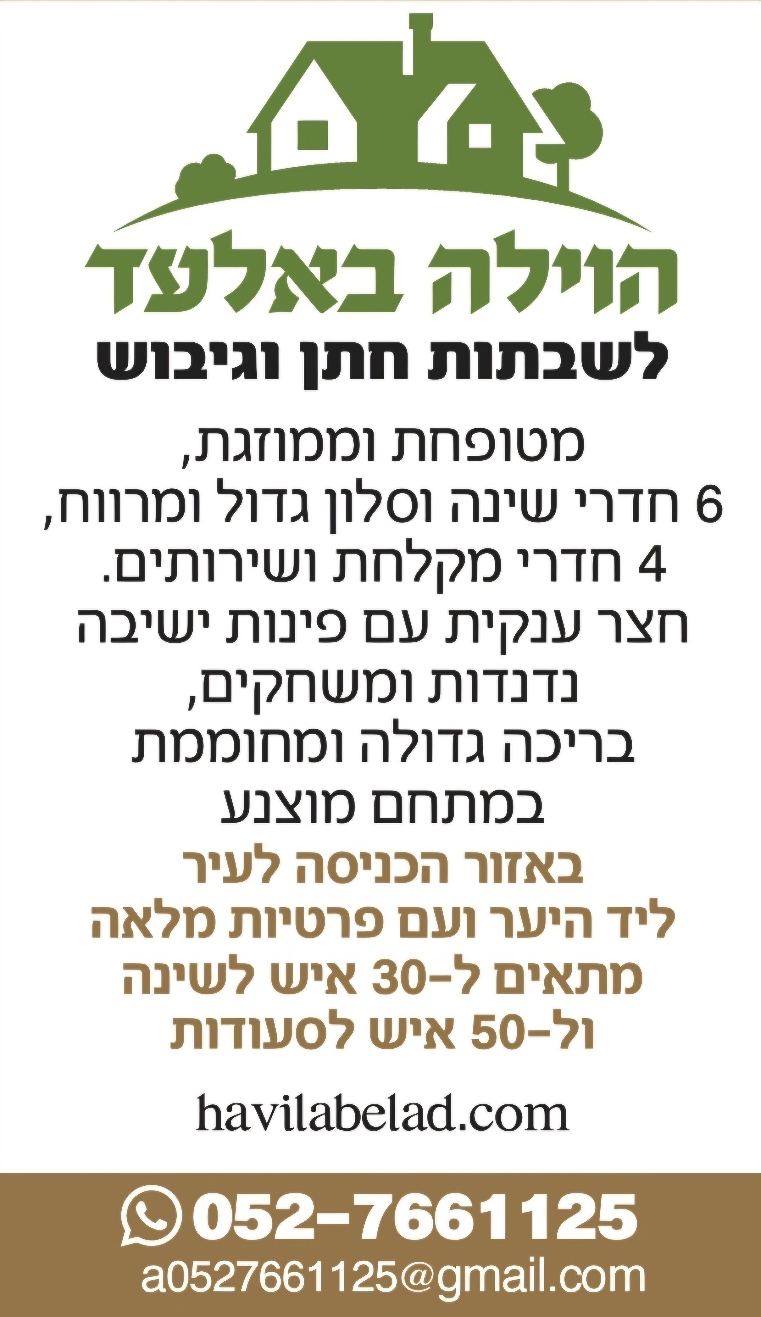 ניתן לשכור את הוילה לערבי גיבוש ,כנס עובדים,מפגש מורות ,ימי הולדת,ערב על האש,סיום מסכת ועוד..